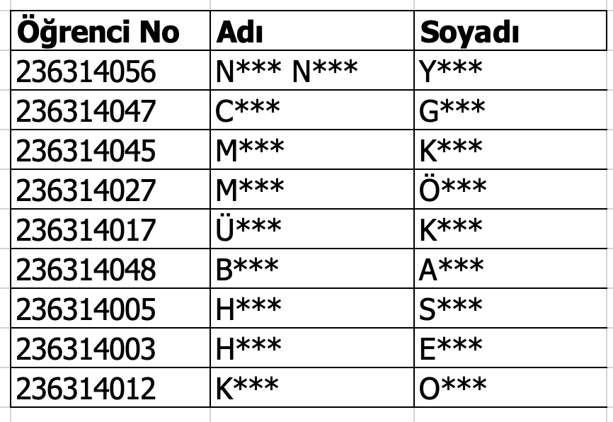 AŞAĞIDAKİ LİSTEDEKİ ÖĞRENCİLER ÜÇ DERS SINAVINA BAŞVURABİLİR.