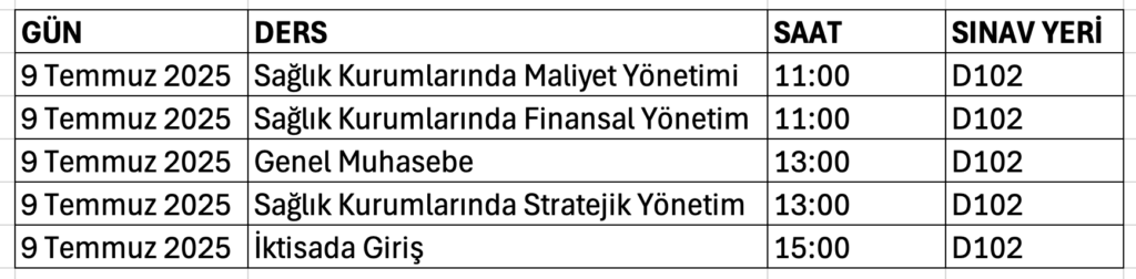 Sağlık Kurumları İşletmeciliği üç ders sınav KESİN programı AŞAĞIDAKİ GİBİ GERÇEKLEŞECEKTİR.